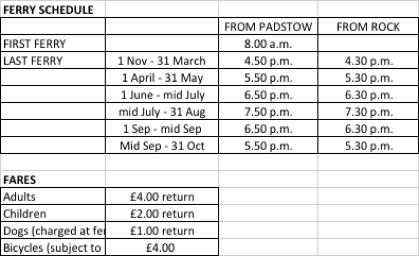 Treglyn Rock Padstow Ferry Schedule Published 25/02/2017 at 825 × 503 in Padstow to Rock Ferry, timetable and prices ← Previous Next →